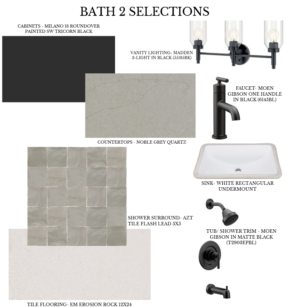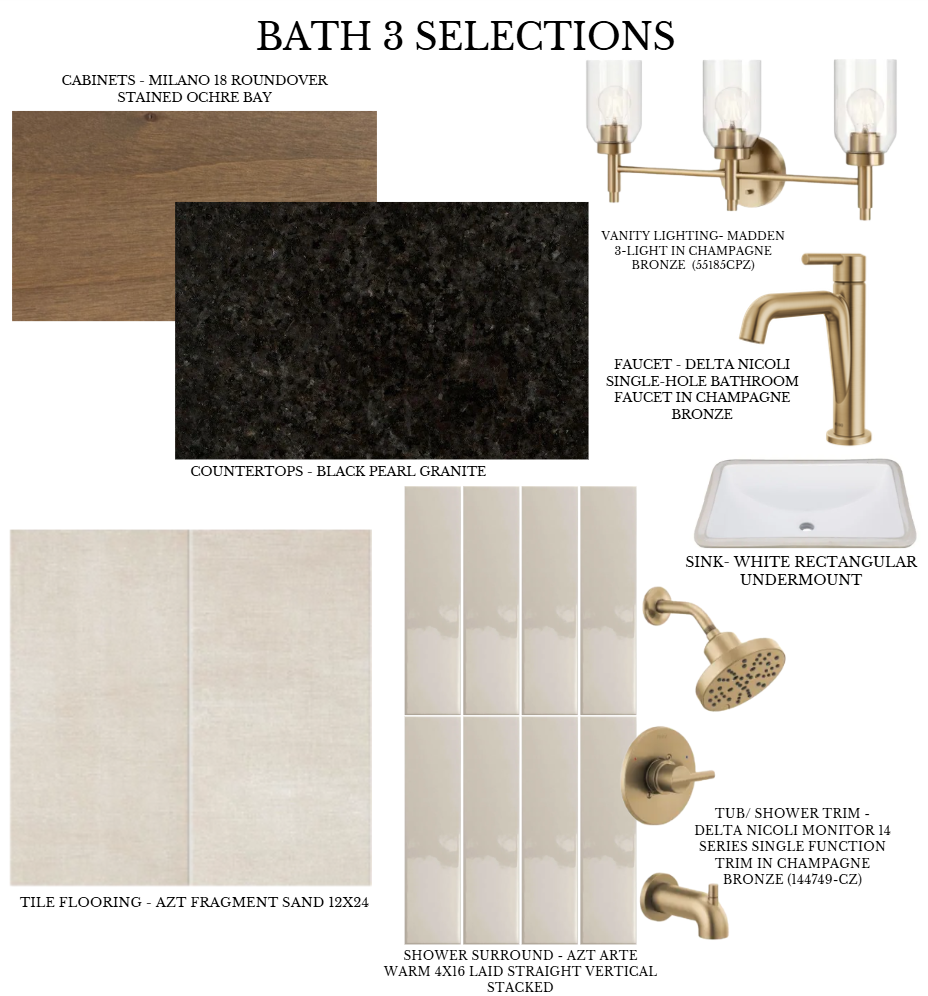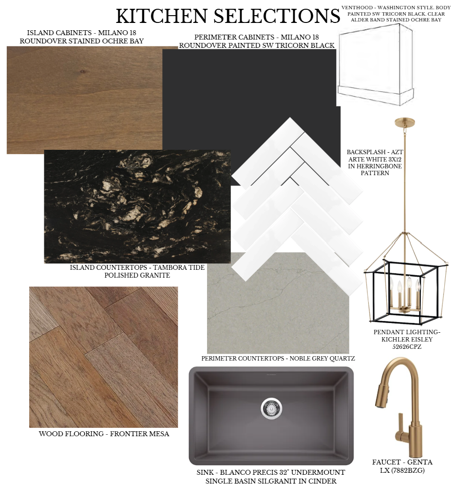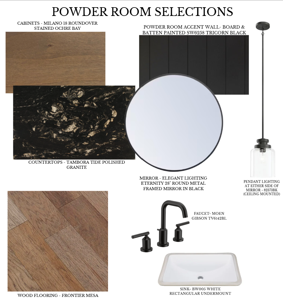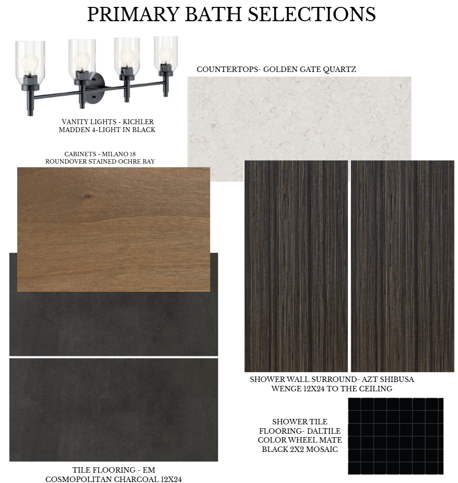 During my internship, I was given a project to design a market-ready spec home that aligned with the architectural standards and overall aesthetic of the neighborhood while standing out through, cohesive interior selections. The design vision was moody rustic- a balance of warmth, depth, and modern restraint- intended to appeal to a broad buyer while still feeling elevated and intentional.